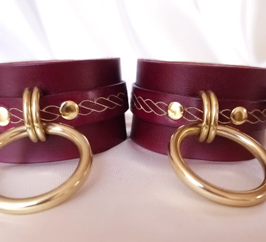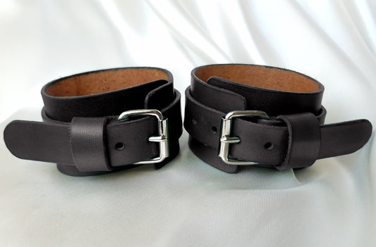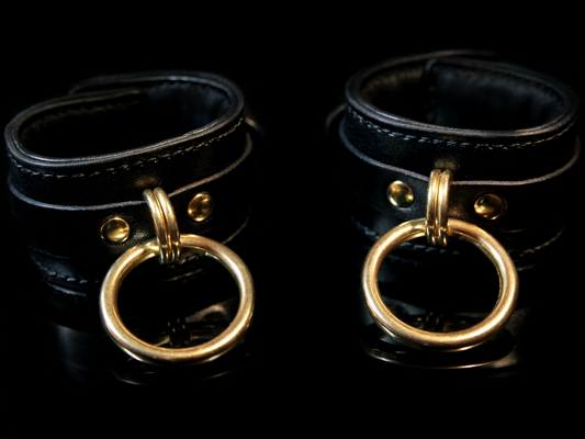 Discover handmade leather handcuffs for every taste and scene—slim or wide, minimalist or highly ornate, entry-priced to luxury. Each pair is crafted from vegetable-tanned, full-grain leather, hand-dyed in vivid color, and finished skin-safe with an undyed, water-based interior. Ornaments are engraved and, on select designs, micro-painted by hand for crisp, lasting detail. Choose silver or gold hardware (many solid-brass options). Closures vary by model (classic hardware or corset-style lacing on decorative lines). Add your exact wrist size in the cart under “Order Special Instructions” for a confident, comfortable fit. Styled for BDSM/fetish looks and light-to-medium play. Worldwide shipping (free over €200); each pair ships in an organic cotton pouch.
